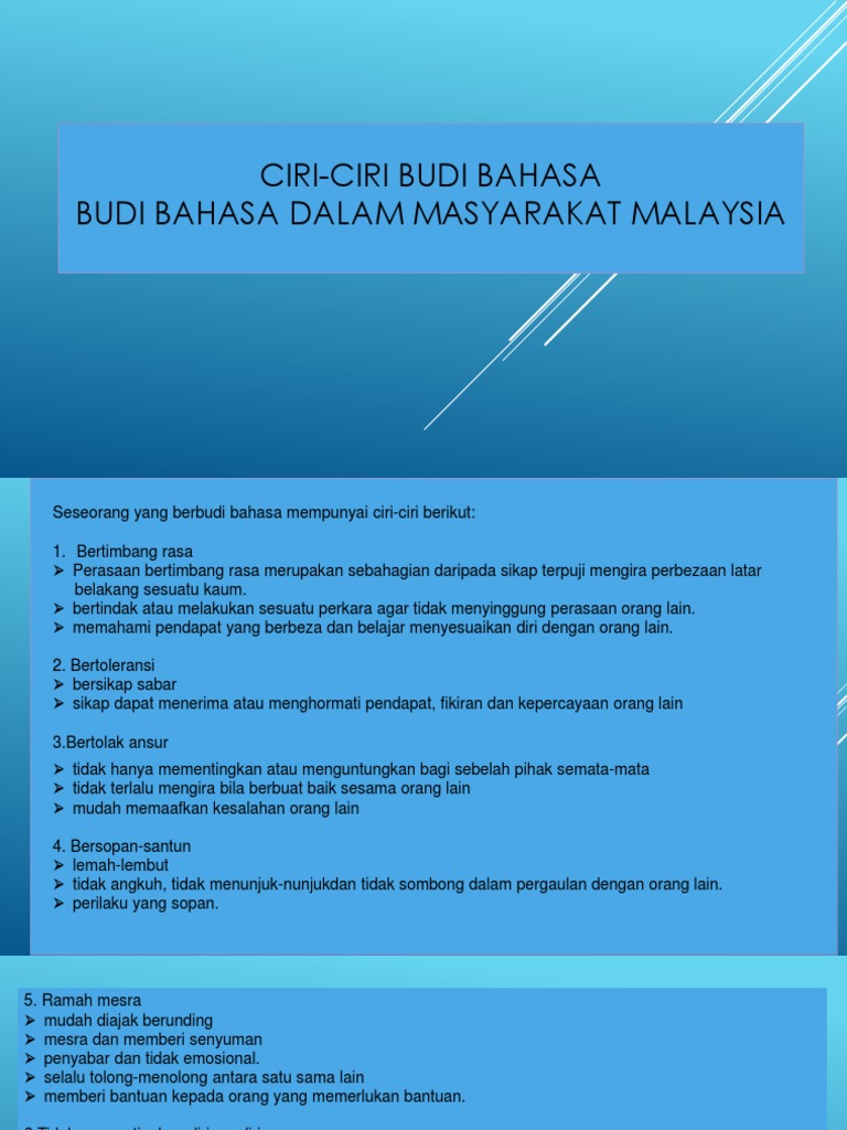 Ciri Ciri Budi Bahasa Dan Budi Bahasa Dalam Masyarakat