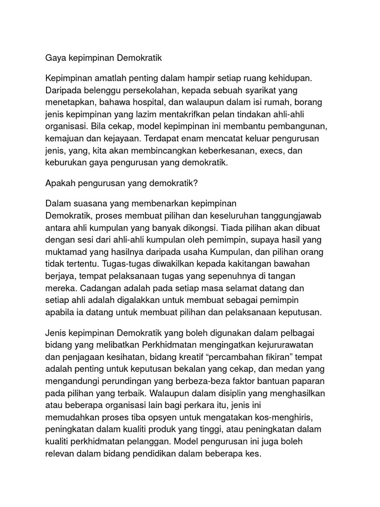 Doc Gaya Kepimpinan Demokratik Why Cannot Academia Edu