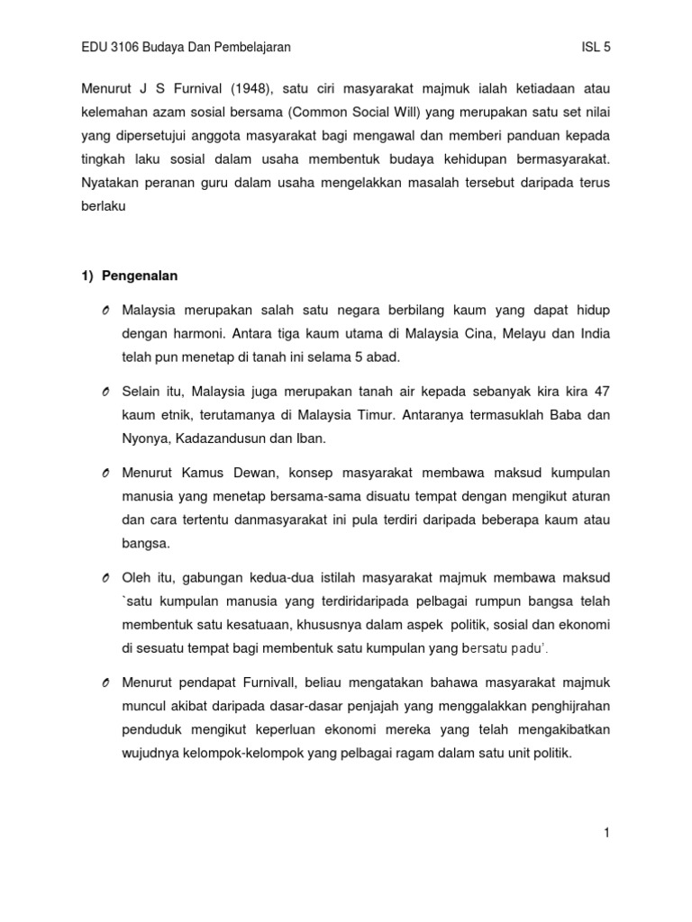 A Piece Of White Paper Ciri Ciri Masyarakat Majmuk