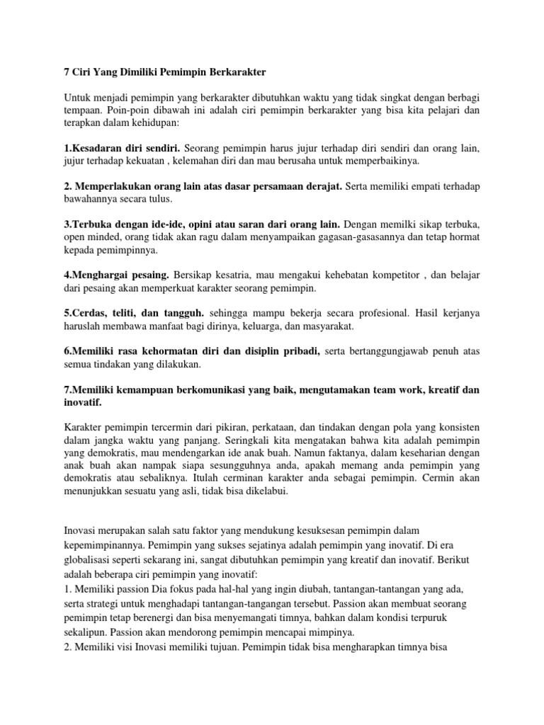 Pdf Karakter Dan Akhlak Pemimpin Dalam Perspektif Islam