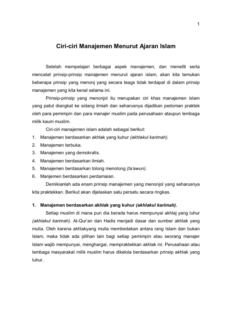 Ciri Ciri Manajemen Menurut Ajaran Islam