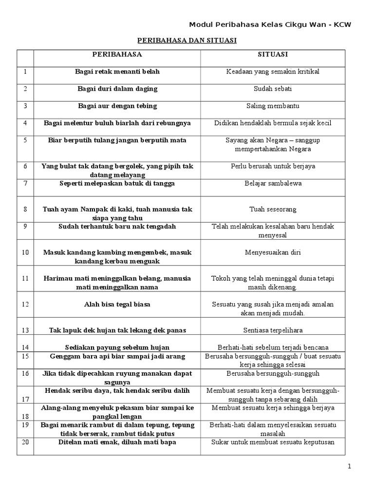 Senarai Peribahasa Spm