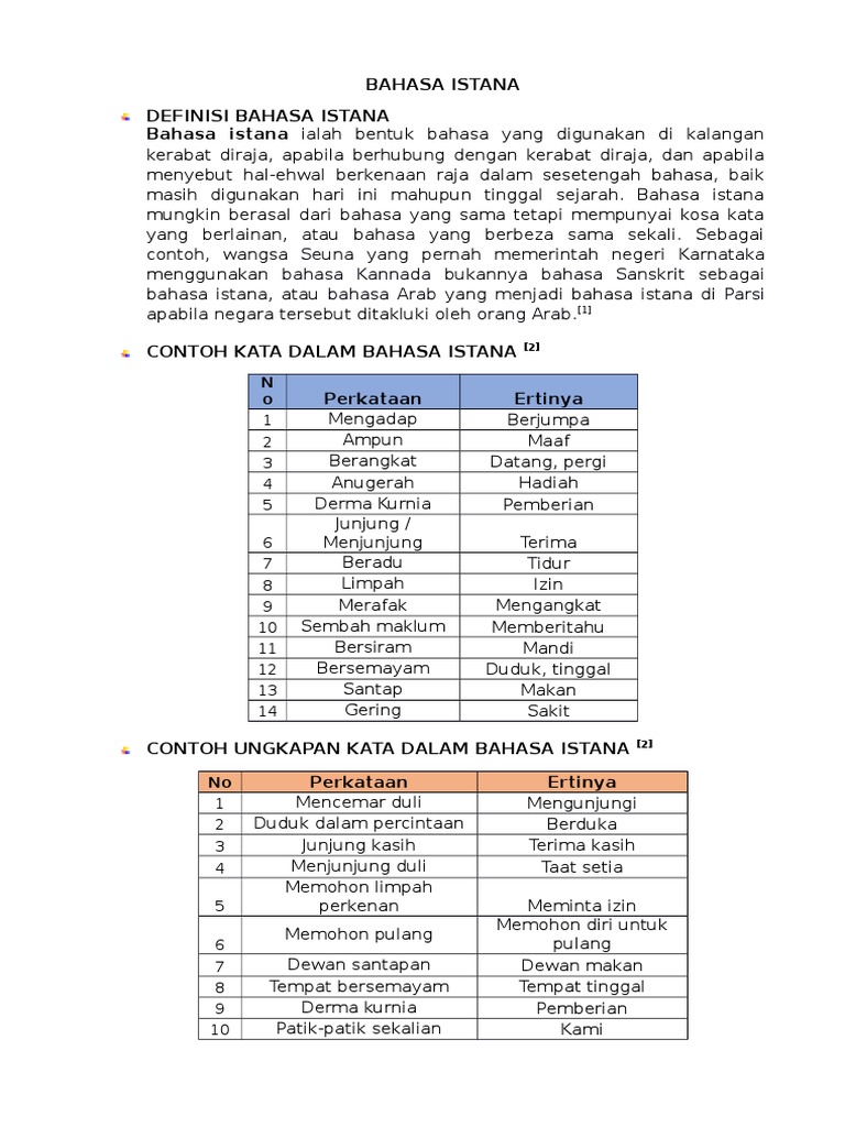 Contoh Bahasa Istana Dan Maksudnya