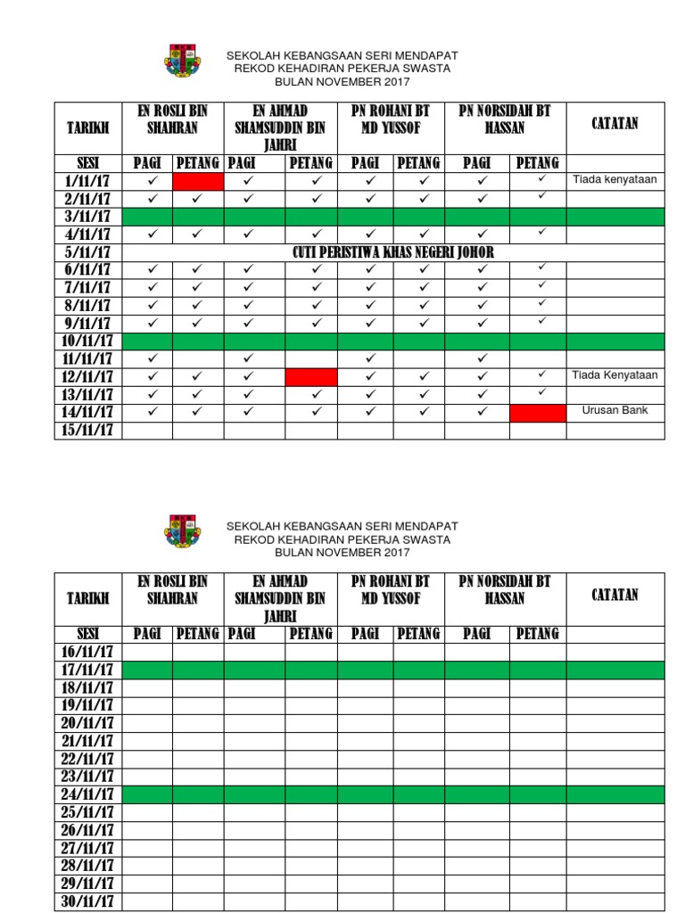 Inilah contoh buku kehadiran pekerja dan hal lain yang berhubungan erat dengan contoh buku kehadiran pekerja serta aspek k3 secara umum di indonesia. Memo ldp 2. Apabila telah selesai anda boleh klik pada butang update attendance record.