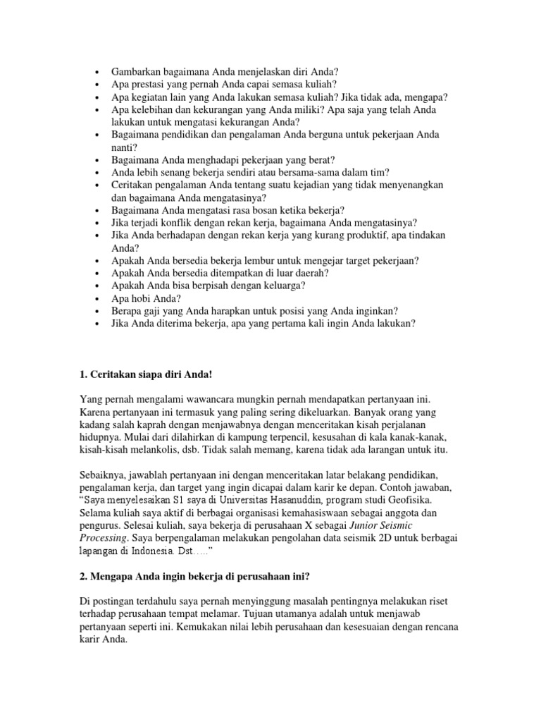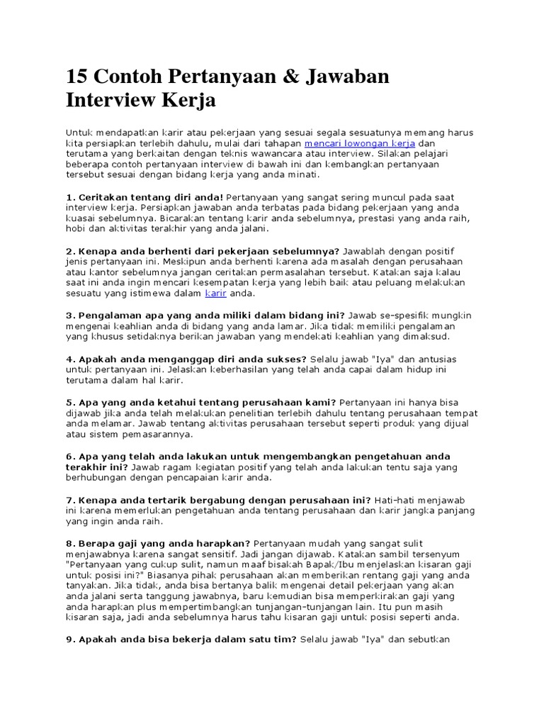 Contoh Jawaban Wawancara Kerja Doc