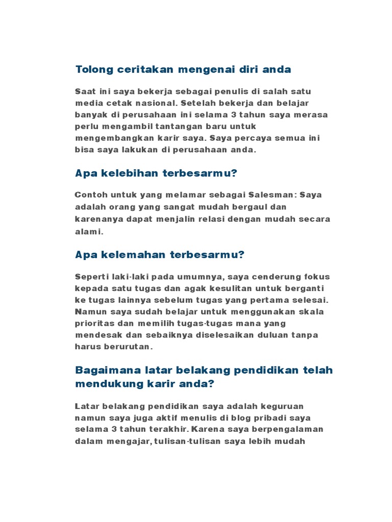 Contoh Jawaban Interview Ceritakan Tentang Diri Anda Lowongan Kerja Surabaya November 2020 Lowongan Kerja Jawa Timur Terbaru