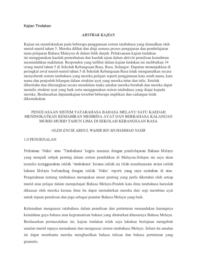 Doc Contoh Kajian Tindakan Masalah Penulisan Shamil Aiman Academia Edu