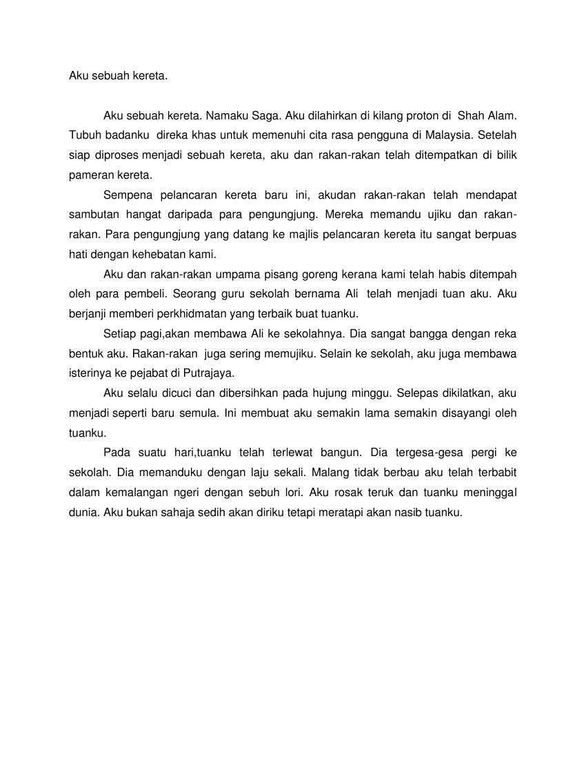 Contoh Karangan Sekolah Rendah Karangan Jenis Autobiografi Aku Sebuah Kereta