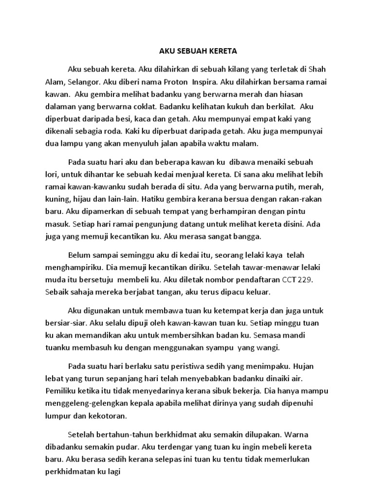 Contoh Karangan Sekolah Rendah Karangan Jenis Autobiografi Aku Sebuah Kereta
