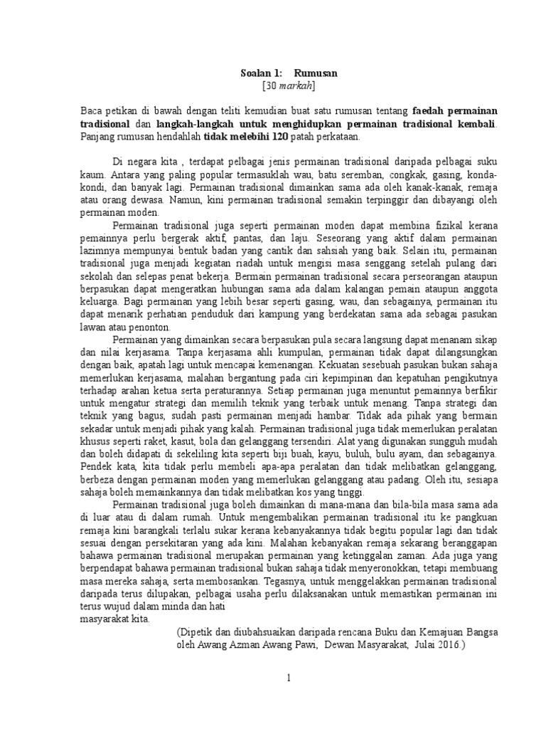 Cikgu Sabar Mohd Karangan Tingkatan 3 Permainan Tradisional