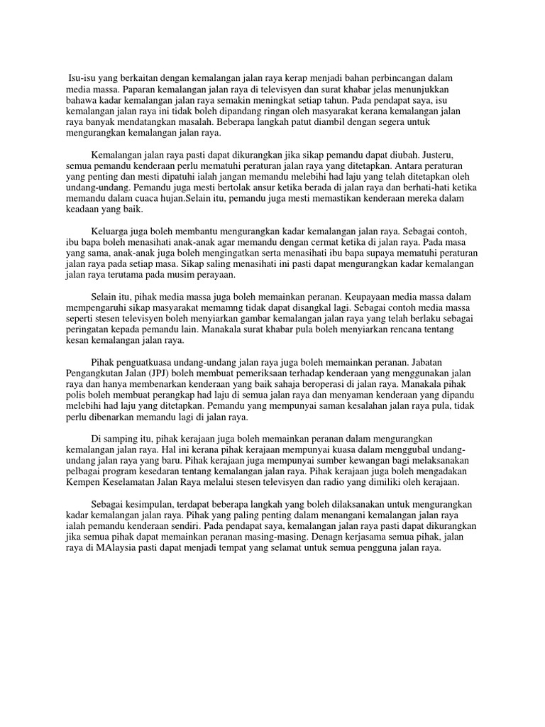 Karangan Langkah Langkah Mengurangkan Kemalangan Jalan Raya