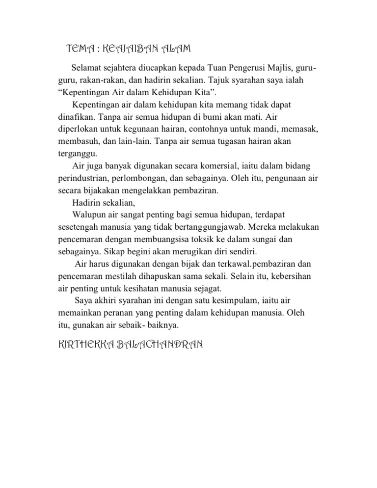 Karangan Kepentingan Air Dalam Kehidupan