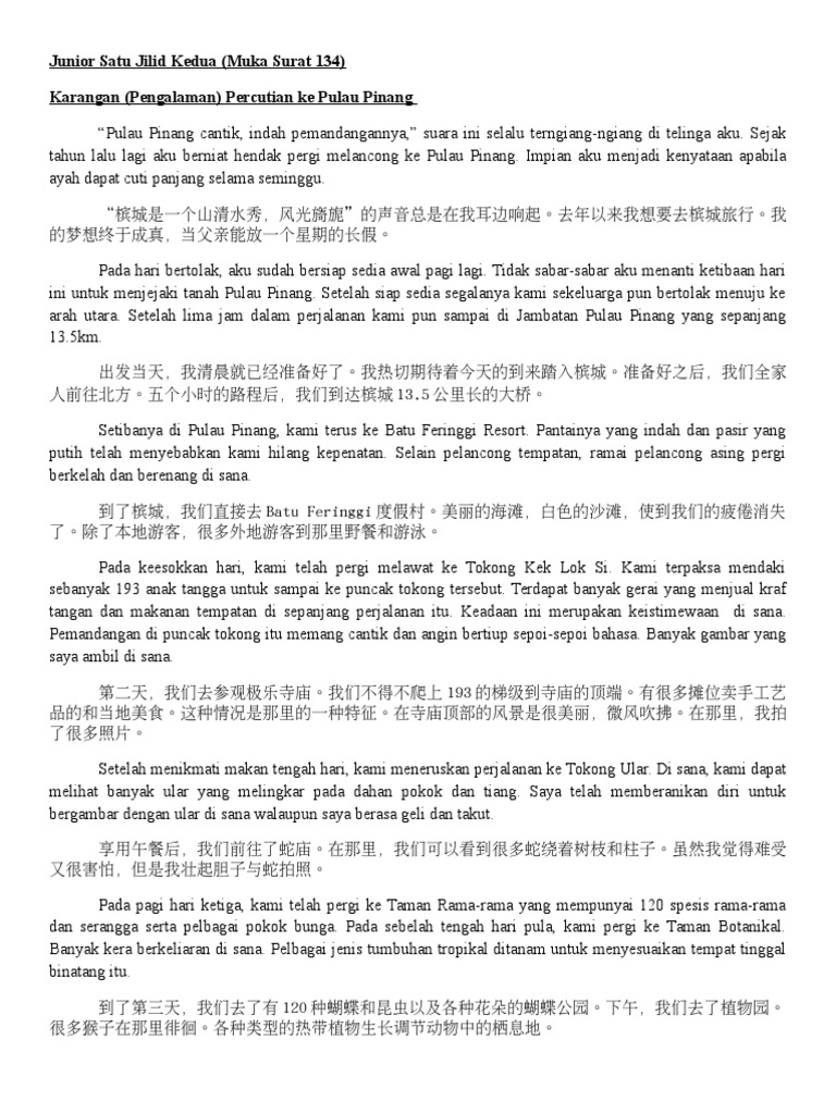 Karangan Pengalaman Percutian Ke Pulau Pinang Juec Tingkatan 1