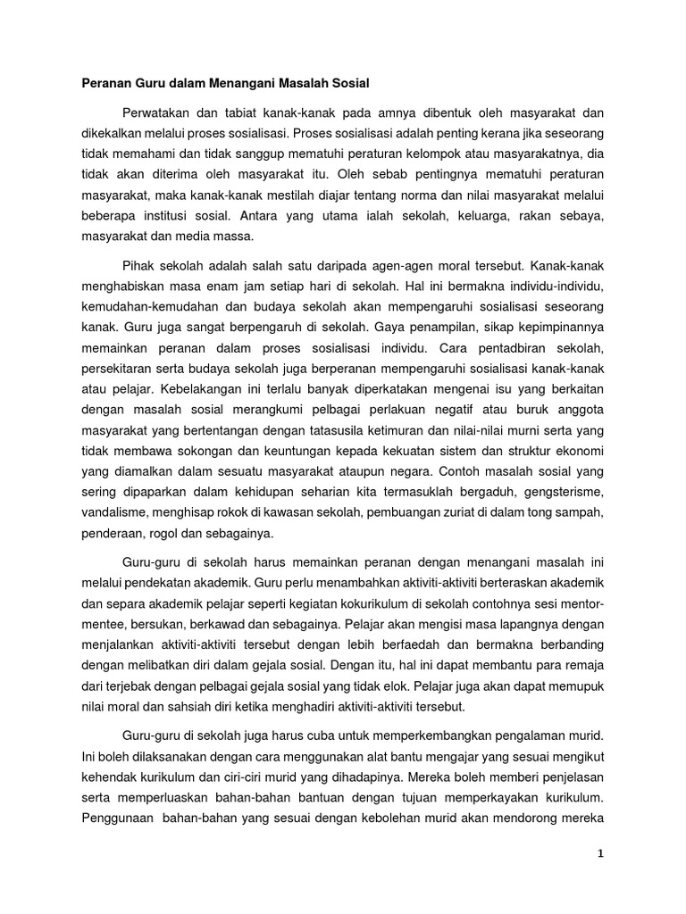 Peranan Guru Dalam Menangani Masalah Sosial