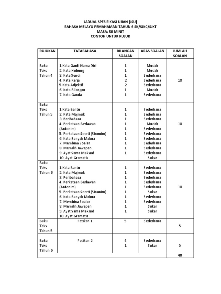 Contoh Kata Bantu Tahun 6
