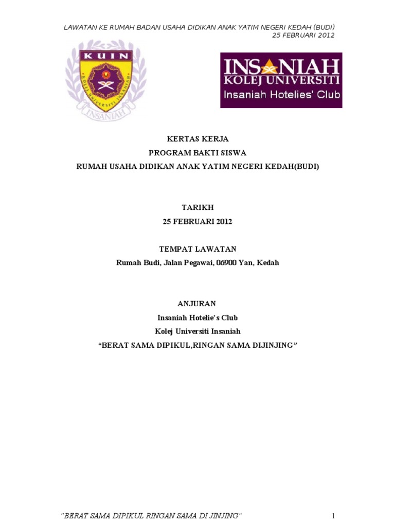 Contoh Kertas Kerja Lawatan Ke Rumah Anak Yatim