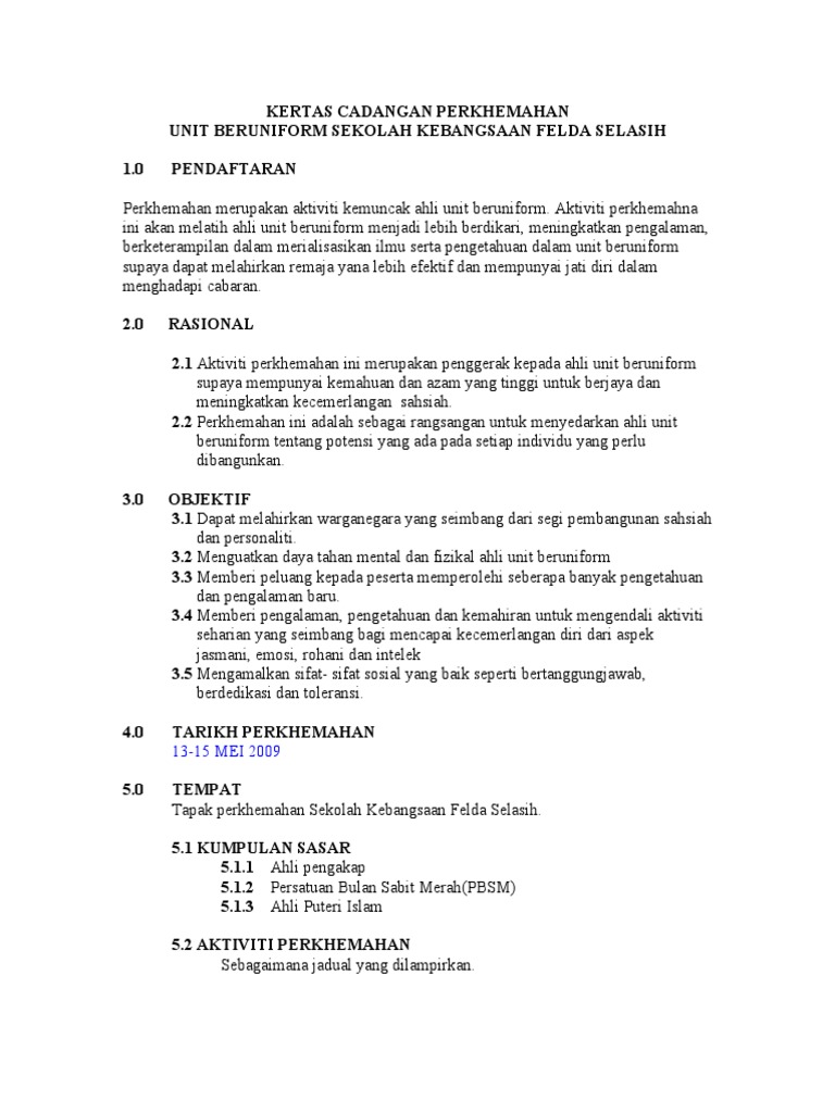 Kertas Kerja Perkhemahan Perdana Unit Beruniform 2014 Doc