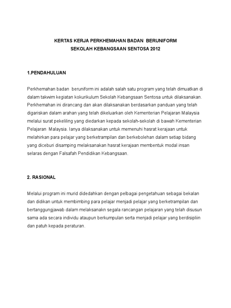 132072516 Kertas Kerja Perkhemahan Badan Beruniform Doc