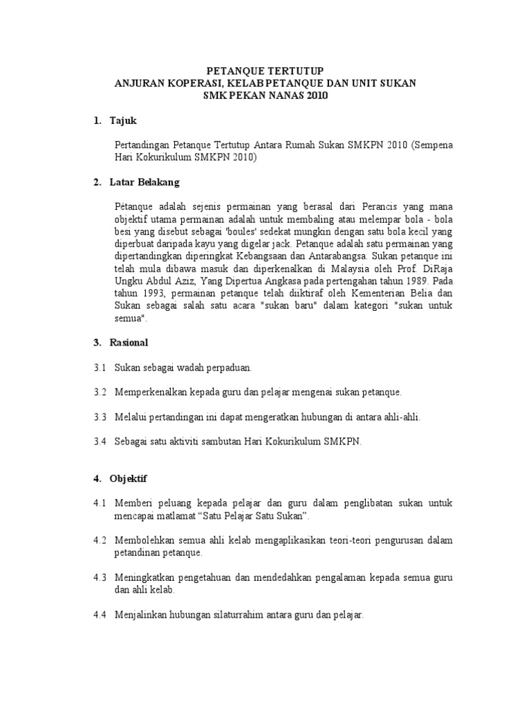 Doc Kertas Kerja Pertandingan Liga Petanque Tingkatan 6 Syafid Iskandaruddin Academia Edu
