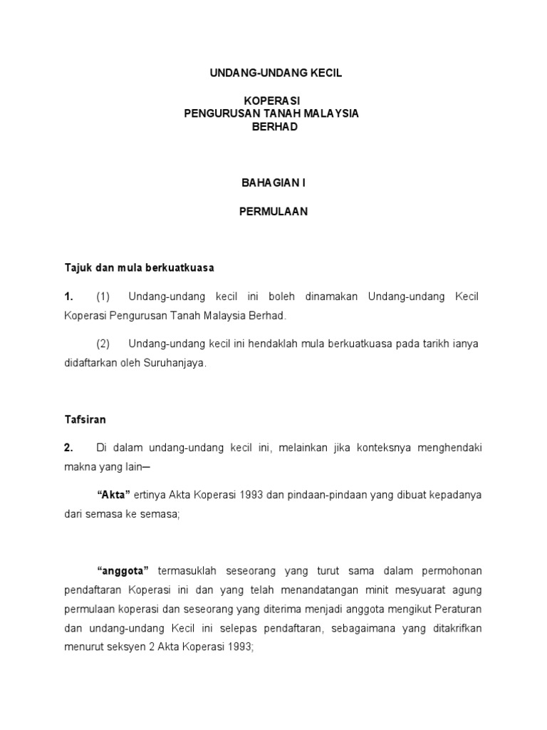 Undang2 Kecil Koperasi Tanah Doc