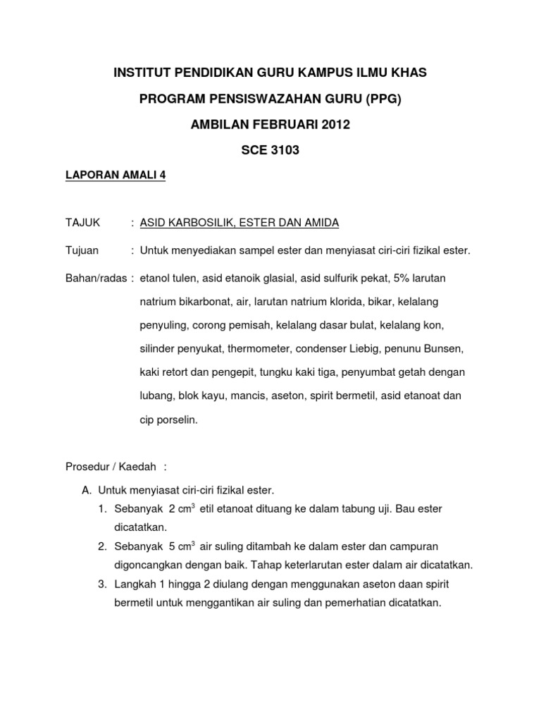 Nota nota ini telah direka bentuk untuk memantapkan pengetahuan dalam ilmu kimia kepada pelajar. Contoh laporan eksperimen kimia tingkatan 5 contoh laporan eksperimen kimia spm contoh laporan eksperimen kimia yang contoh laporan eksperimen kimia kadar contoh laporan eksperimen biologi contoh laporan eksperimen tingkatan 1 contoh laporan keuangan contoh laporan prakerin contoh laporan magang contoh laporan penelitian. Semua amali dalam senarai amali kimia tingkatan 4 rujuk muka surat 13 15 dan tingkatan 5 rujuk muka surat 16 boleh dilaksanakan untuk tujuan pentaksiran.