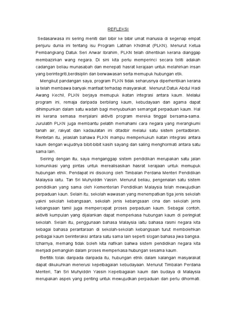 Refleksi Hubungan Etnik Refleksi Pertama Tamanya Saya Amat Bersyukur Dengan Peluang Ini Untuk Melibatkan Diri Dalam Projek Video Hubungan Etnik Ini Course Hero