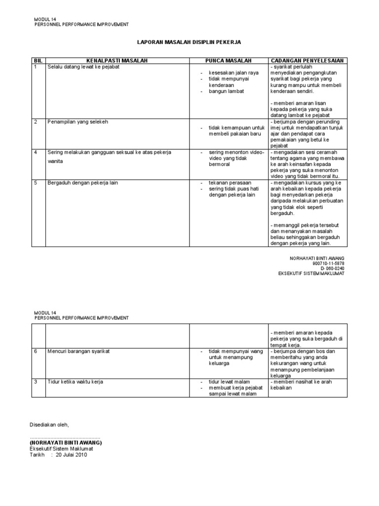 Laporan Masalah Disiplin Pekerja
