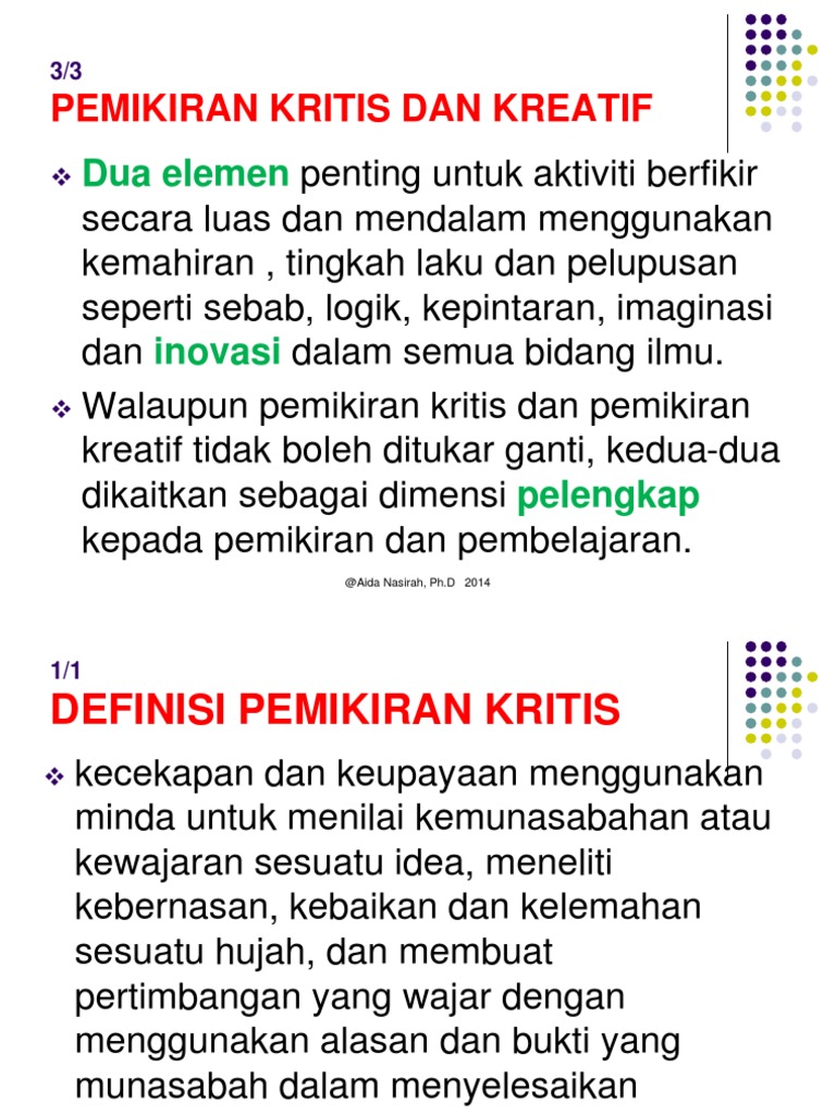 Pemikiran Kritikal Dan Kreatif 2013
