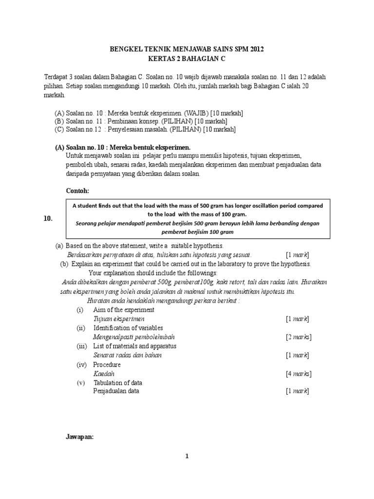 Teknik menjawab soalan sains spm kertas 2 bahagian c. Sains kertas 1 1511 1 mengandungi 50 soalan objektif aneka pilihan dan aneka gabungan. Klik di sini untuk muat turun tips menjawab kertas 2 sains spm bahagian c soalan 10.