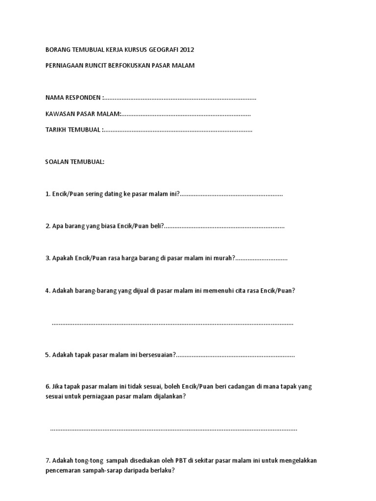 Contoh Borang Soal Selidik Geografi Pt3 2018 Temubual