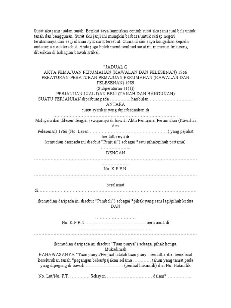 Surat Aku Janji Jualan Tanah