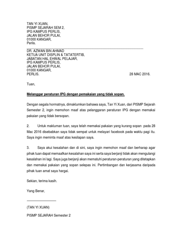 Contoh Surat Rasmi Memohon Maaf Atas Salah Laku Rasmi V Cute766