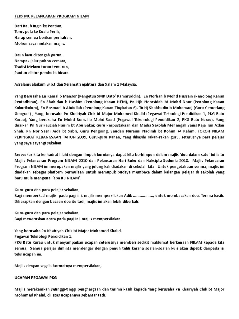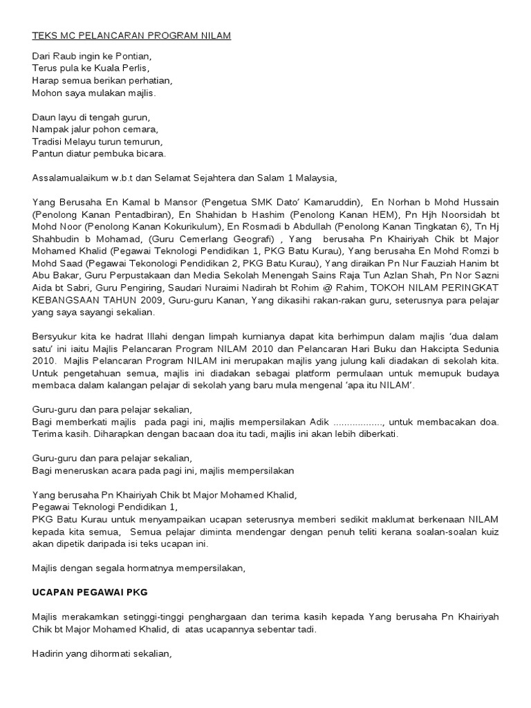 Doc Teks Pelancaran Program Nilam Zamzarina Binti Tuslan Siti Academia Edu