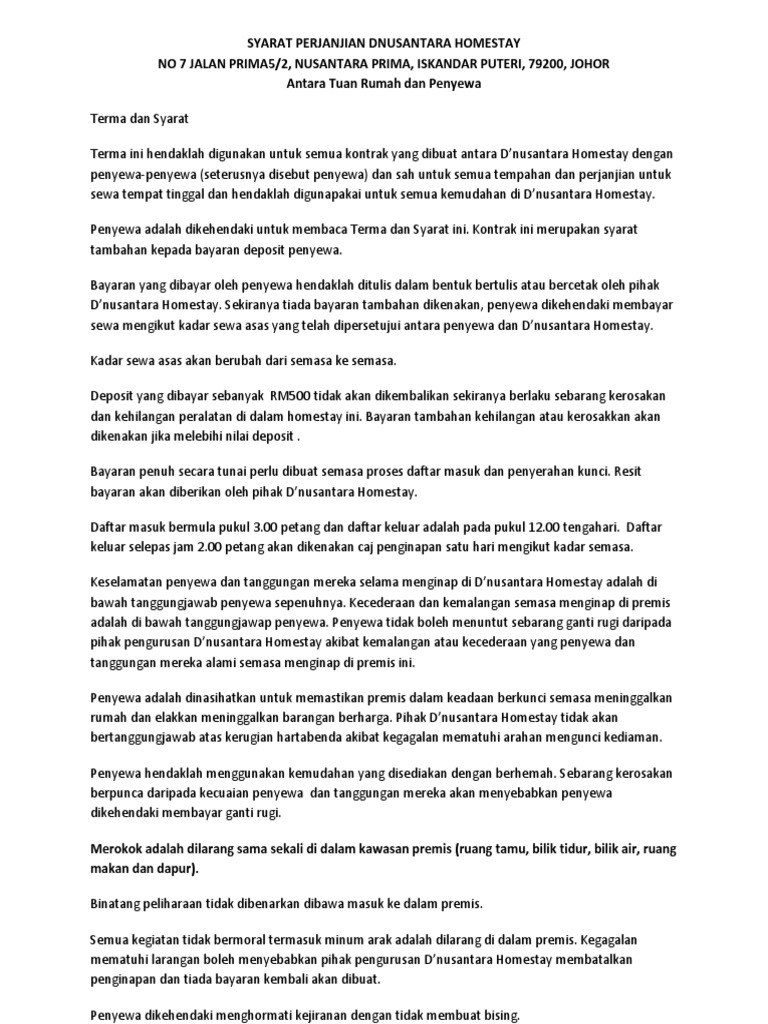 Untuk Makluman Terma Syarat Mydanish Homestay Taman Kosas Ampang Facebook