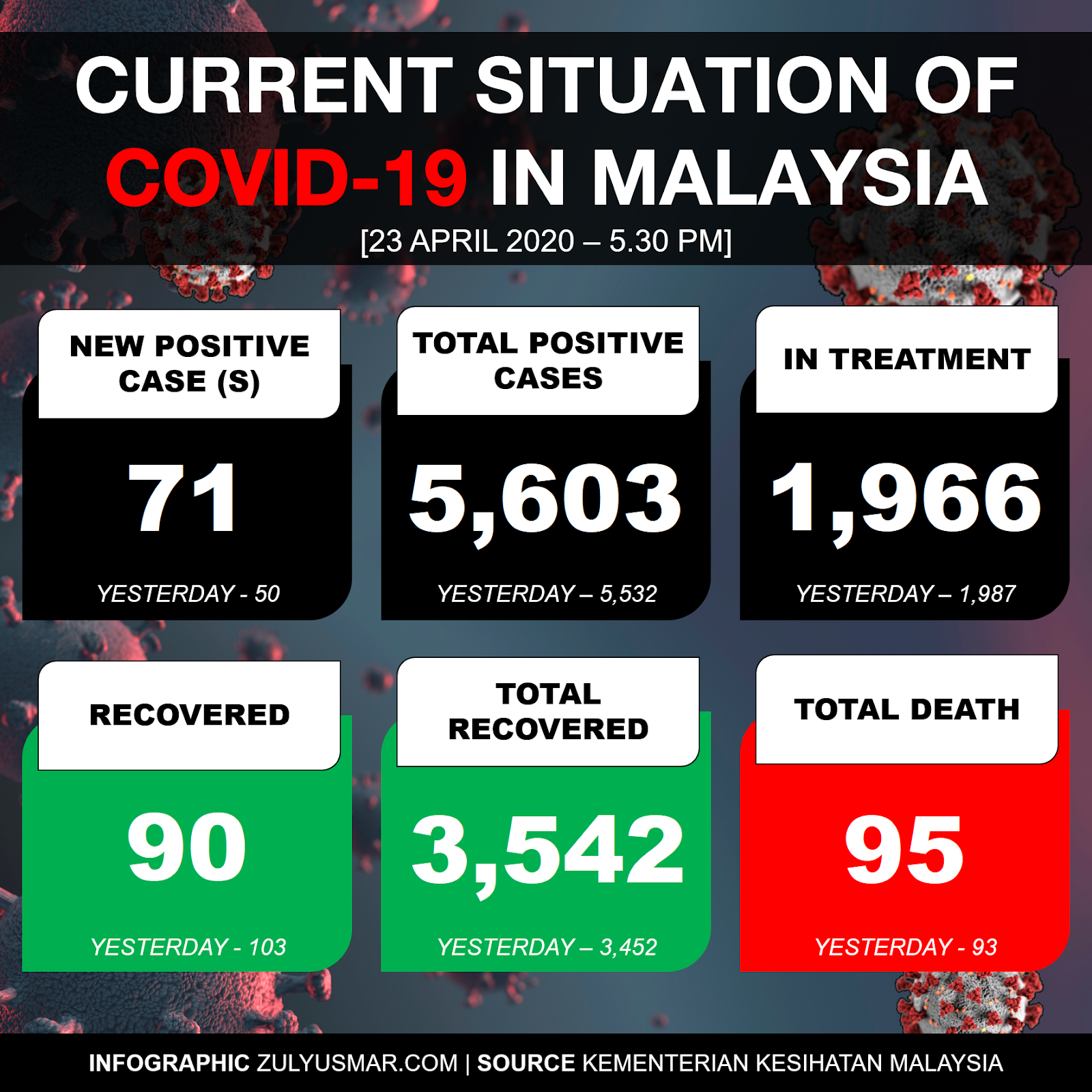 Current Statistics Of Covid 19 In Malaysia 23 April 2020 Zulyusmar Com Malaysian Lifestyle Food Beverages Travel Technology And News