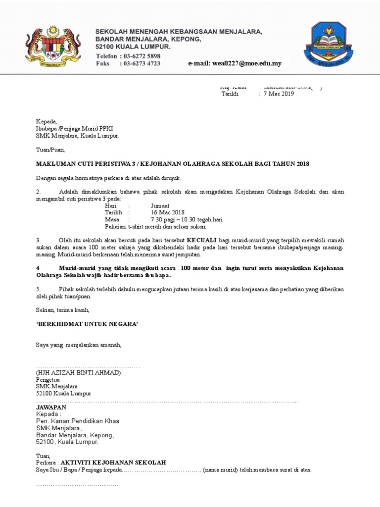Cuti peristiwa takrif cuti peristiwa. Pemberitahuan cuti guru besar pengetua hendaklah memberitahu ibu bapa secara bertulis mengenai hari ganti cuti penggal sekolah dan cuti peristiwa. Bagaimana pula syarat syarat untuk memohon cuti peristiwa adakah perlu ada peristiwa pada hari tersebut murid bercuti tetapi guru perlu hadir.