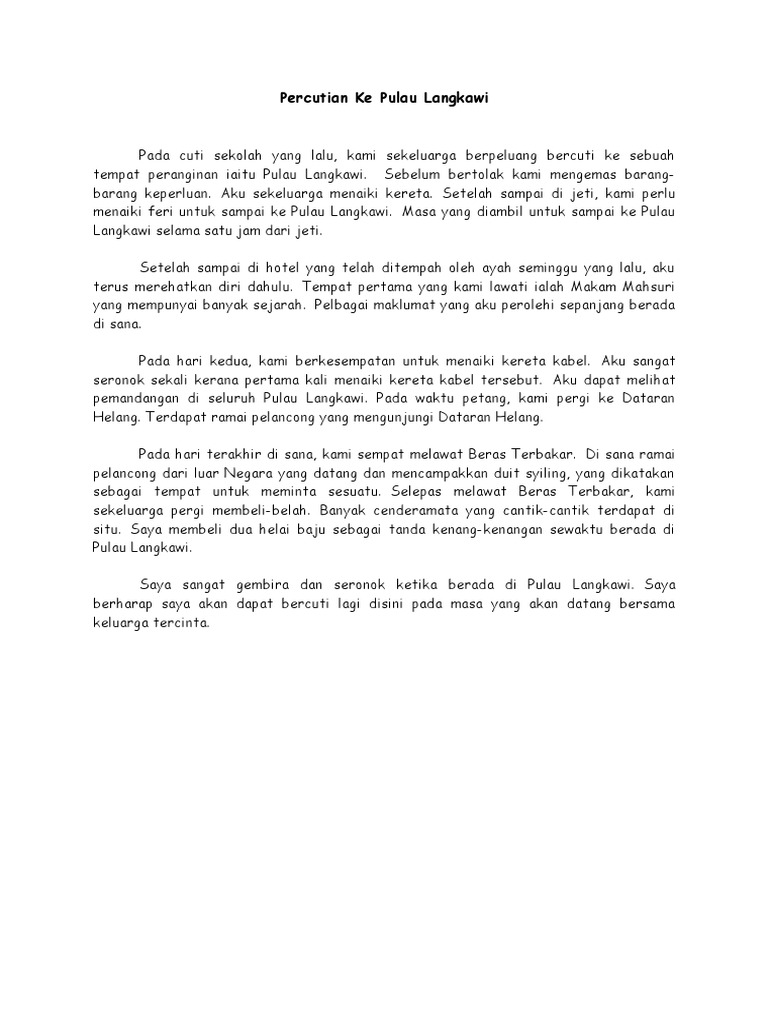 Koleksi contoh karangan bahasa inggeris pt3 pt3 english essays. Contoh karangan bahasa inggeris tentang percutian karangan pertama. Essays about a holiday to langkawi island in english.