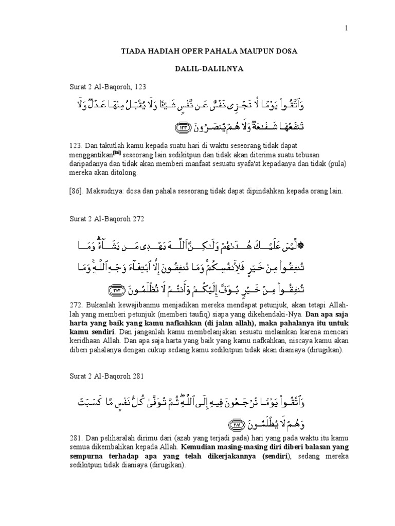 Dalil dosa dan pahala. Hujah untuk menyokong pernyataan tersebut orang yang berpegang dengan konsep dosa dan pahala akan sentiasa mengawasi diri. Tirmidzi dan disahihkan oleh syaikh al albani rasulullah shallallahu alaihi wasallam bersabda ikutkanlah umroh kepada haji karena keduanya menghilangkan kemiskinan dan dosa dosa sebagaimana pembakaran menghilangkan karat pada besi emas dan perak. Sementara tidak ada pahala bagi haji yang mabrur kecuali surga.