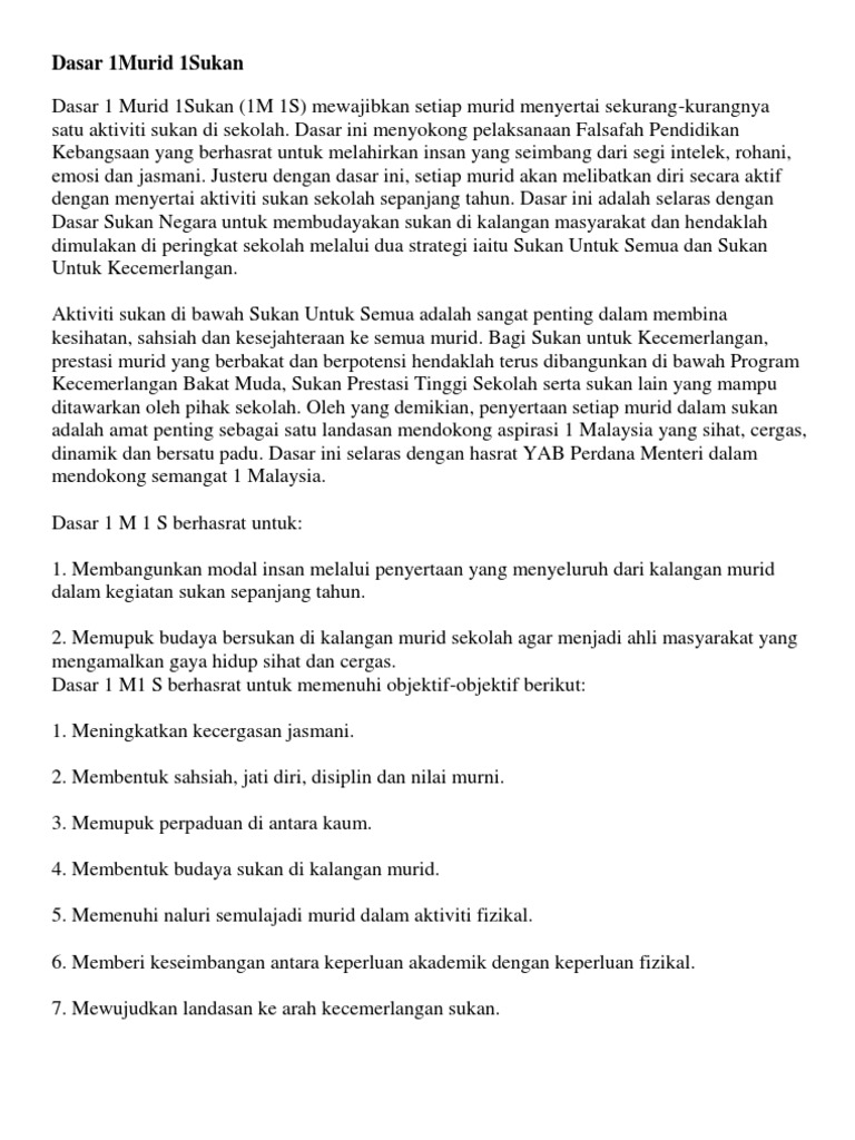 Bm Peralihan Pt3 Spm Stpm Latihan 2 Faedah Faedah Dasar 1 Murid 1 Sukan