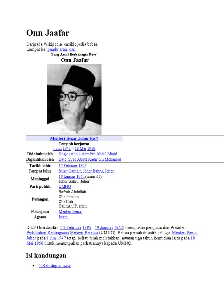 Onn Jaafar Wikipedia Bahasa Melayu Ensiklopedia Bebas