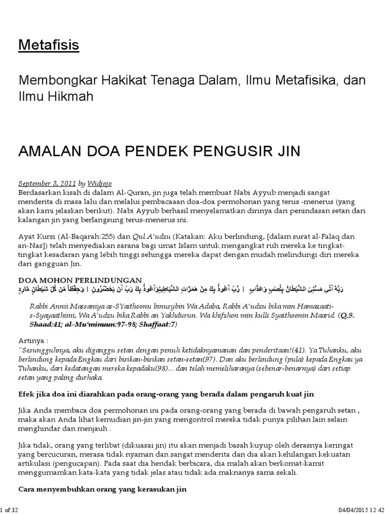 Amalan Doa Pendek Pengusir Jin Metafisis