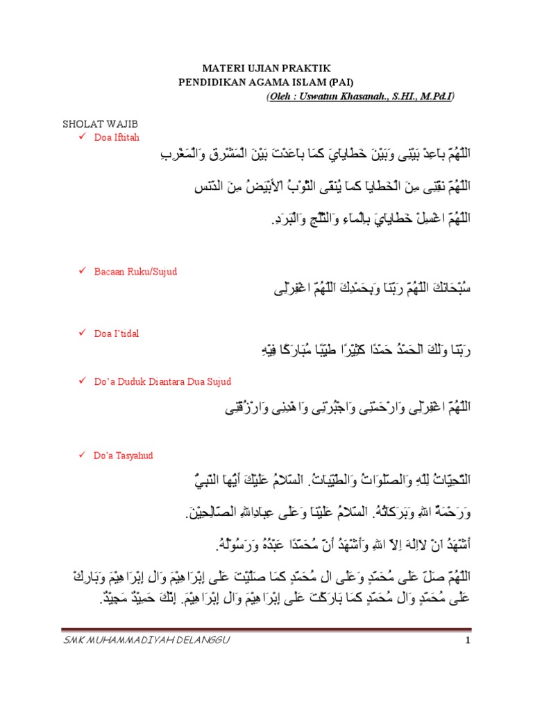 Bacaan Sholat Secara Muhammadiyah Docx