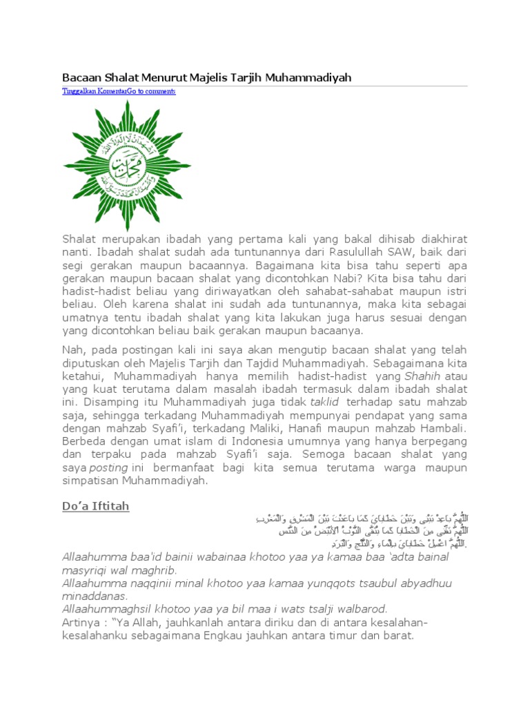 Bacaan Sholat Menurut Hpt Muhammadiyah