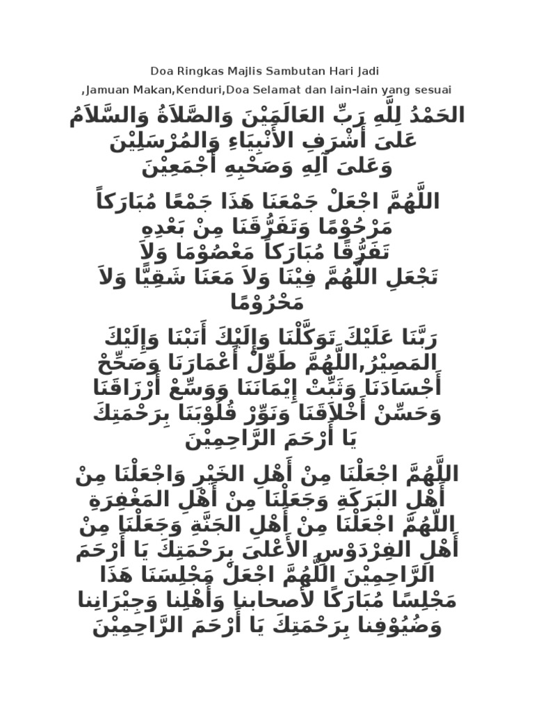 Doa Ringkas Majlis Sambutan Hari Jadi