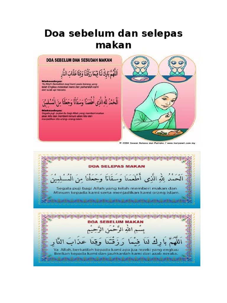 Sesiapa memenuhinya maka dia akan mendapat segala yang diminta dan sesiapa yang mengabaikannya dialah orang yang melampaui batas dalam berdoa sehingga tidak. Doa sebelum dan selepas makan berdoa adalah ibadah. Kita juga pasti pernah mengalaminya diajari membaca doa sebelum dan sesudah makan oleh kedua orang tuanya atau sebagai orang tua yang mengajarkan anaknya untuk membaca doa tersebut.