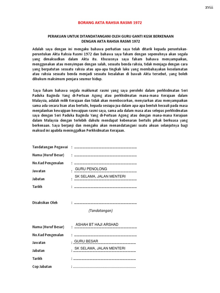 A Lampiran 1 Borang Perakuan Akta Rahsia Rasmi 1972