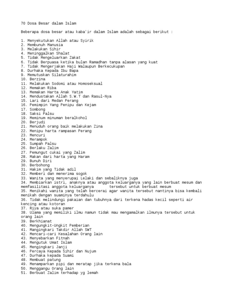 70 Dosa Besar Dalam Islam