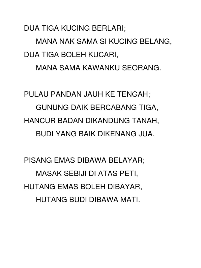 Pantun Melayu Pantun Dua Tiga Kucing Berlari