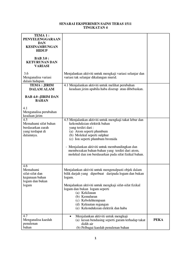 Senarai Eksperimen Sains Teras 1511 Tingkatan 4 Tema 1 Penyelenggaraan Dan Kesinambungan Hidup Bab 3 0 Keturunan Dan Variasi 3 6