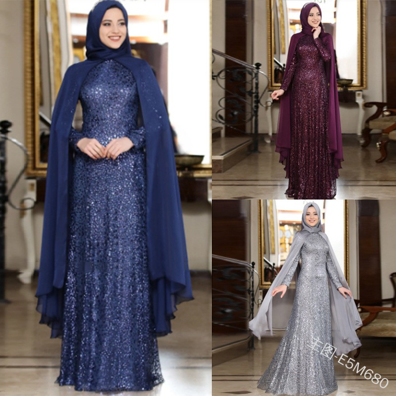 Women S Sequin Muslimah Long Dress Muslim Elegant Party Evening Gown Shopee Malaysia